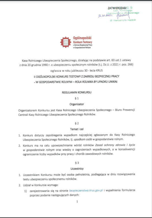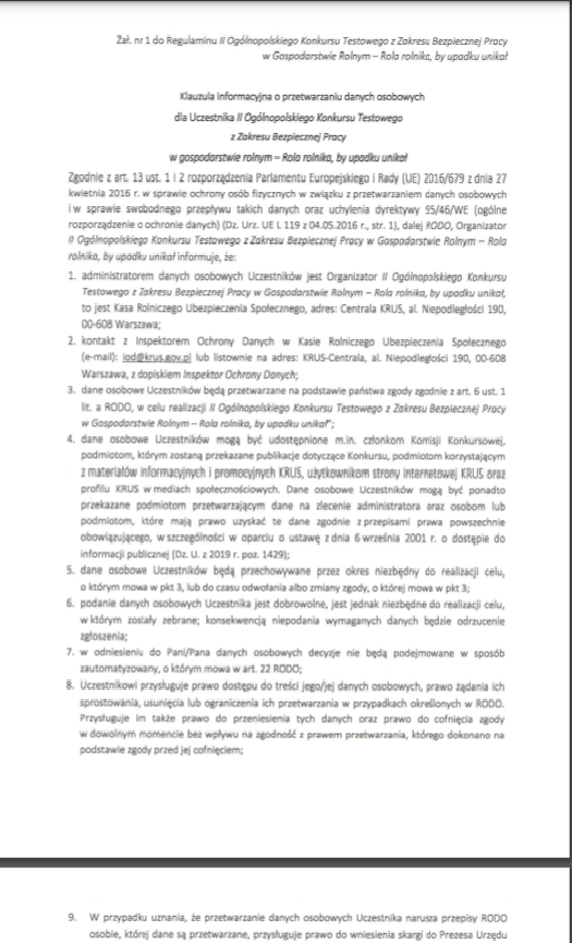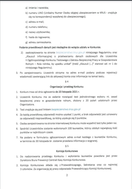 II Ogólnopolski Konkurs Testowy z Zakresu Bezpiecznej Pracy w Gospodarstwie Rolnym